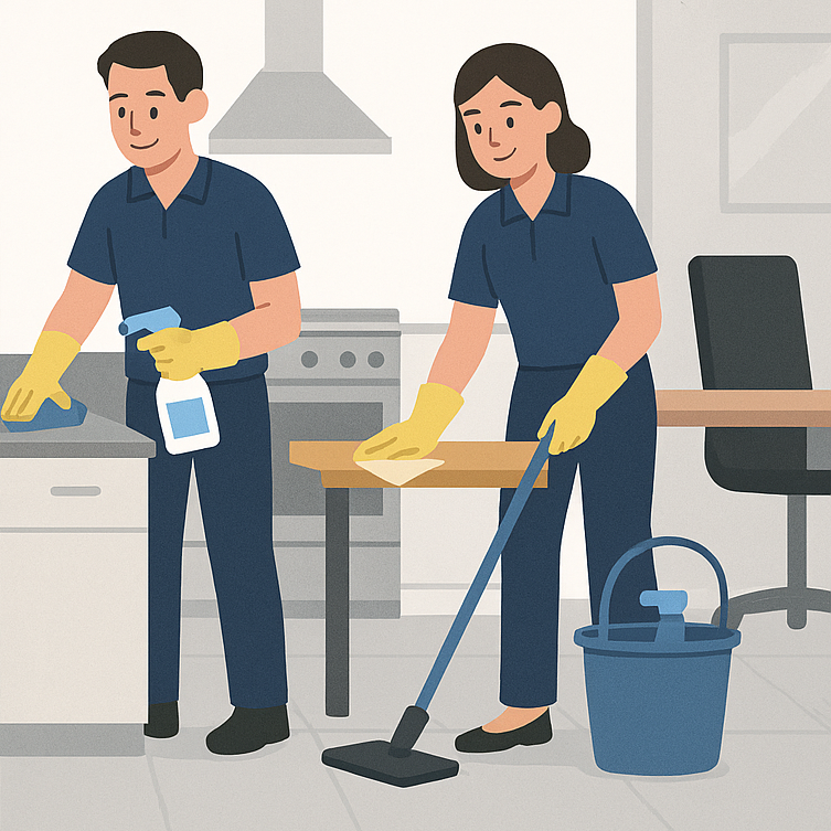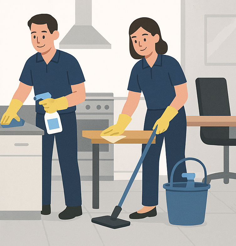regelmäßige Reinigung von Böden, Sanitäranlagen, Küchen und Arbeitsbereichen.
